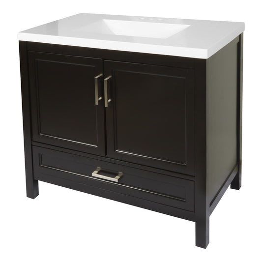 Ella’s Bubbles Nevado 37" Espresso Bathroom Vanity With White Cultured Marble Top and Sink