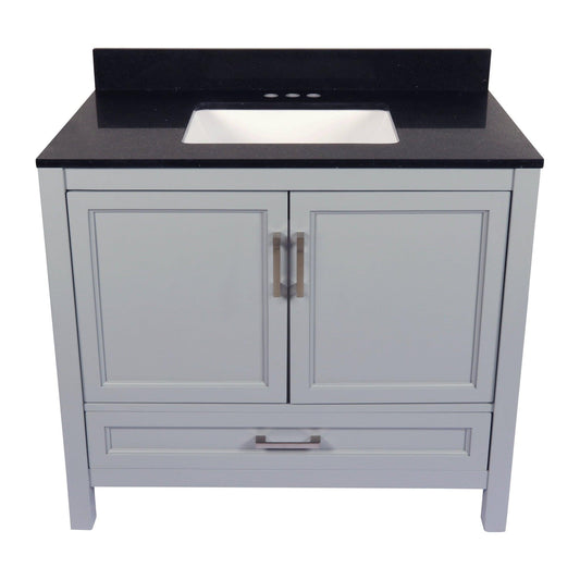 Ella’s Bubbles Nevado 37" Gray Bathroom Vanity With Galaxy Black Quartz Stone Top With Backsplash and Sink