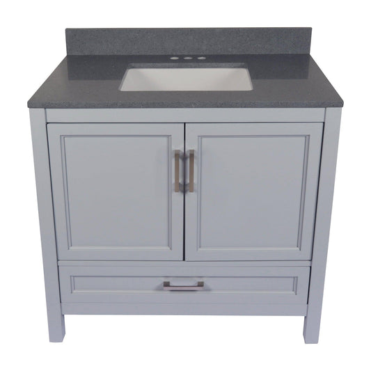 Ella’s Bubbles Nevado 37" Gray Bathroom Vanity With Galaxy Gray Quartz Stone Top With Backsplash and Sink