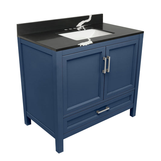 Ella’s Bubbles Nevado 37" Navy Blue Bathroom Vanity With Calacatta Black Quartz Stone Top With Backsplash and Sink
