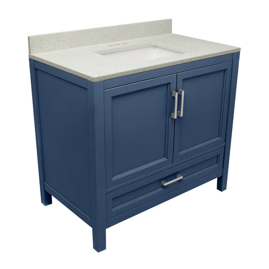 Ella’s Bubbles Nevado 37" Navy Blue Bathroom Vanity With Galaxy White Quartz Stone Top With Backsplash and Sink