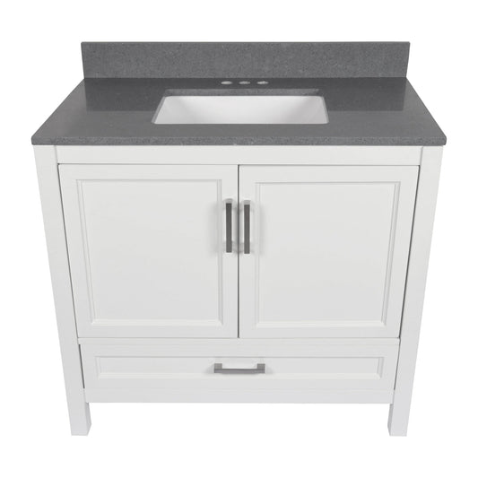 Ella’s Bubbles Nevado 37" White Bathroom Vanity With Galaxy Gray Quartz Stone Top With Backsplash and Sink