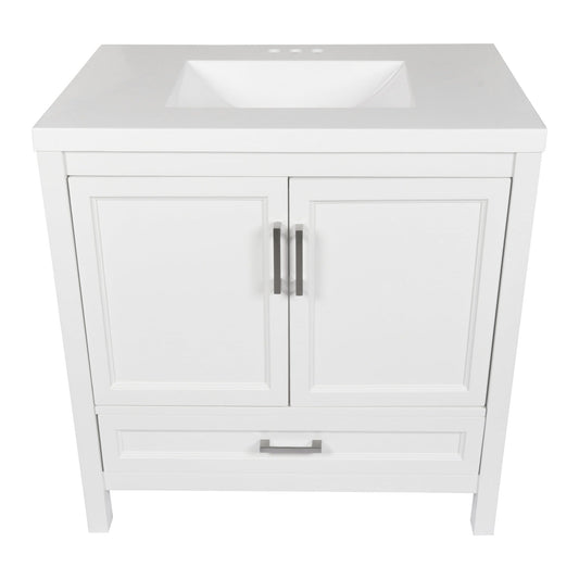 Ella’s Bubbles Nevado 37" White Bathroom Vanity With White Cultured Marble Top and Sink