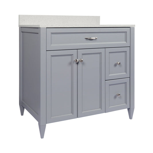Ella’s Bubbles Vail 37" Gray Bathroom Vanity With Galaxy White Quartz Stone Top With Backsplash and Sink