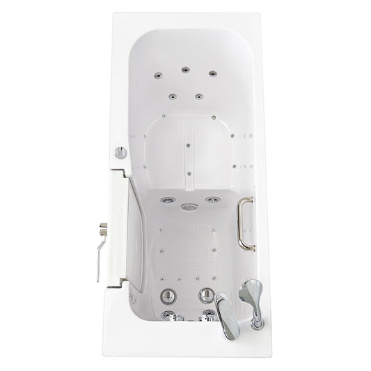 Ella's Bubbles Lounger 27" x 60" White Acrylic Air and Hydro Massage Walk-In Bathtub With 2 Piece Fast Fill Faucet, 2" Dual Drain, Right Outward Swing Door and Digital Controller