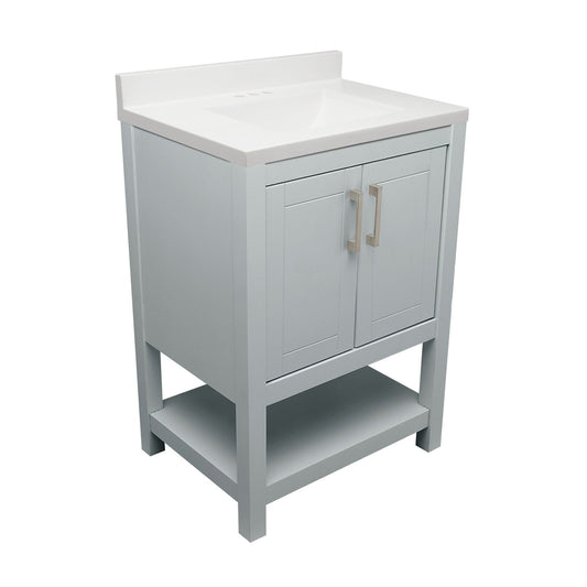 Ella's Bubbles Taos 25" Gray Bathroom Vanity With White Cultured Marble Top With White Backsplash and Sink