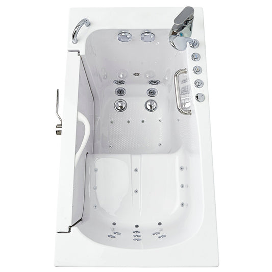 Ella's Bubbles Transfer 30" x 52" White Acrylic Air and Hydro Massage Walk-In Bathtub With 2-Piece Fast Fill Faucet, 2" Dual Drain, Right L-Shape Outswing Door and Heated Seat