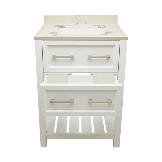 Ella's Bubbles Tremblant 25" White Bathroom Vanity With Carrara White Cultured Marble Top With Backsplash and Sink