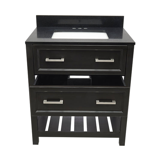Ella's Bubbles Tremblant 31" Espresso Bathroom Vanity With Galaxy Black Quartz Stone Top With Backsplash and Sink