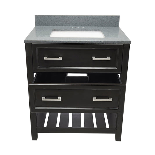 Ella's Bubbles Tremblant 31" Espresso Bathroom Vanity With Galaxy Gray Quartz Stone Top With Backsplash and Sink