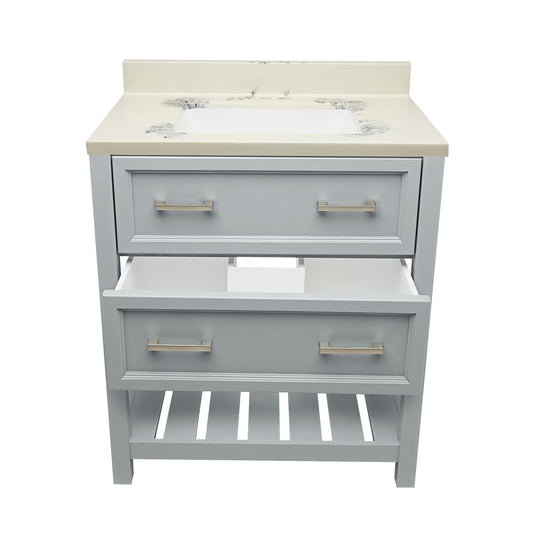 Ella's Bubbles Tremblant 31" Gray Bathroom Vanity With Carrara White Cultured Marble Top With Backsplash and Sink