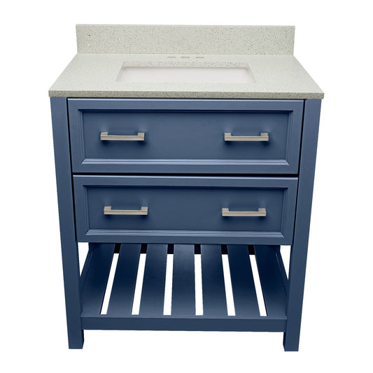 Ella's Bubbles Tremblant 31" Navy Blue Bathroom Vanity With Galaxy White Quartz Stone Top With Backsplash and Sink