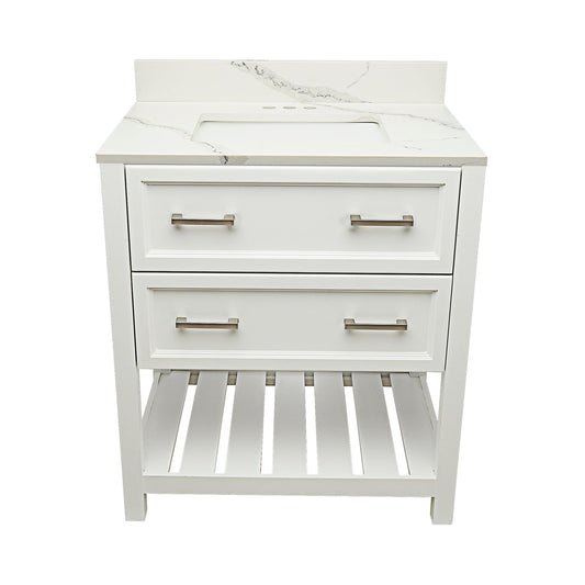 Ella's Bubbles Tremblant 31" White Bathroom Vanity With Calacatta White Quartz Stone Top With Backsplash and Sink