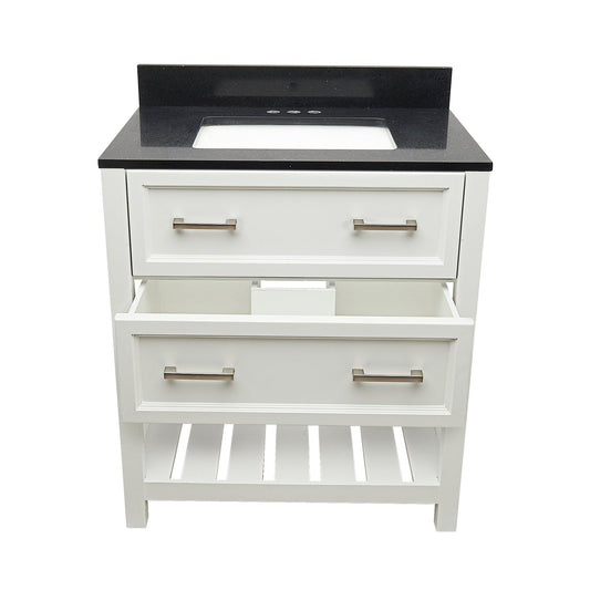 Ella's Bubbles Tremblant 31" White Bathroom Vanity With Galaxy Black Quartz Stone Top With Backsplash and Sink