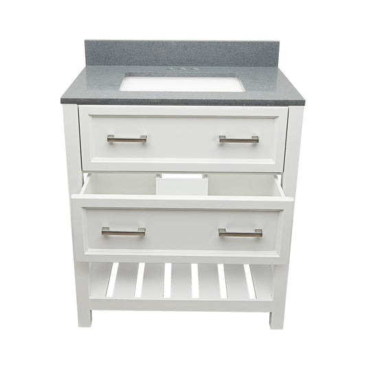 Ella's Bubbles Tremblant 31" White Bathroom Vanity With Galaxy Gray Quartz Stone Top With Backsplash and Sink