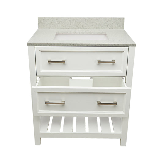 Ella's Bubbles Tremblant 31" White Bathroom Vanity With Galaxy White Quartz Stone Top With Backsplash and Sink