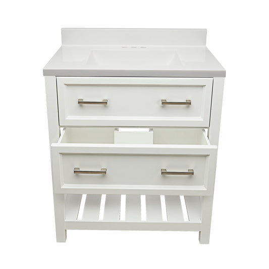 Ella's Bubbles Tremblant 31" White Bathroom Vanity With White Cultured Marble Top With White Backsplash and Sink