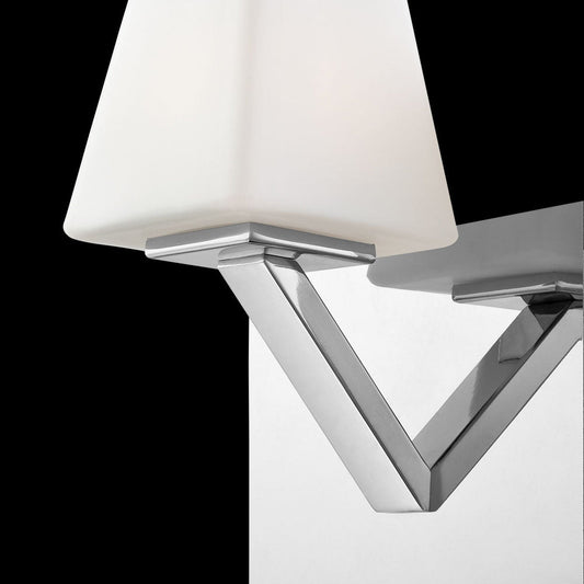 The Anglo bath bar offers a transitional look with its tapered cube opal glass diffuser with polished chrome or nickel backplate. It will make your interior sparkle while staying seamless with your decor.