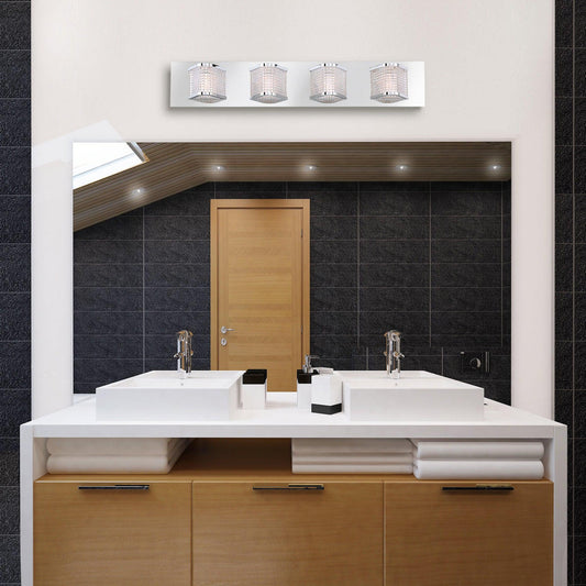 Eurofase Lighting Belgroue 28" 4-light Dimmable Integrated LED Rectangular Chrome Bath Bar With Clear Retro Prismatic Glass Shades