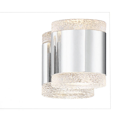 The Seaton collection offers a modern look with its polished chrome tube flanked by pressed crystal-like glass on either end.