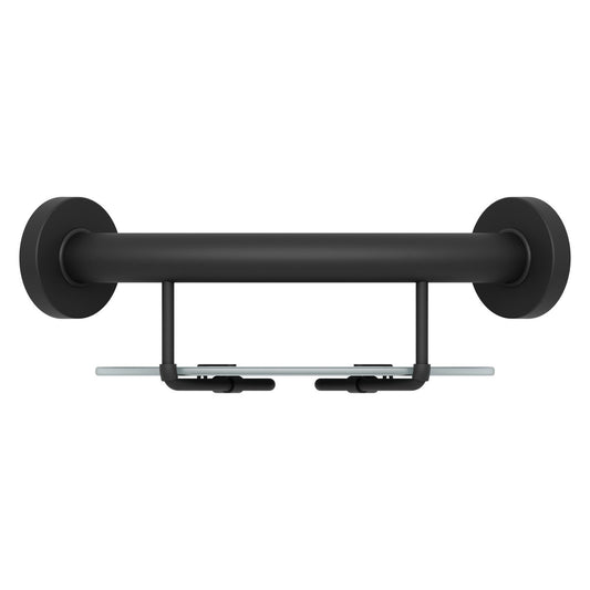 - 10" Stainless Steel Concealed Mount Corner Grab Bar With Integrated Glass Shelf in Matte Black