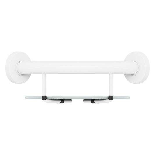 - 10" Stainless Steel Concealed Mount Corner Grab Bar With Integrated Glass Shelf in White