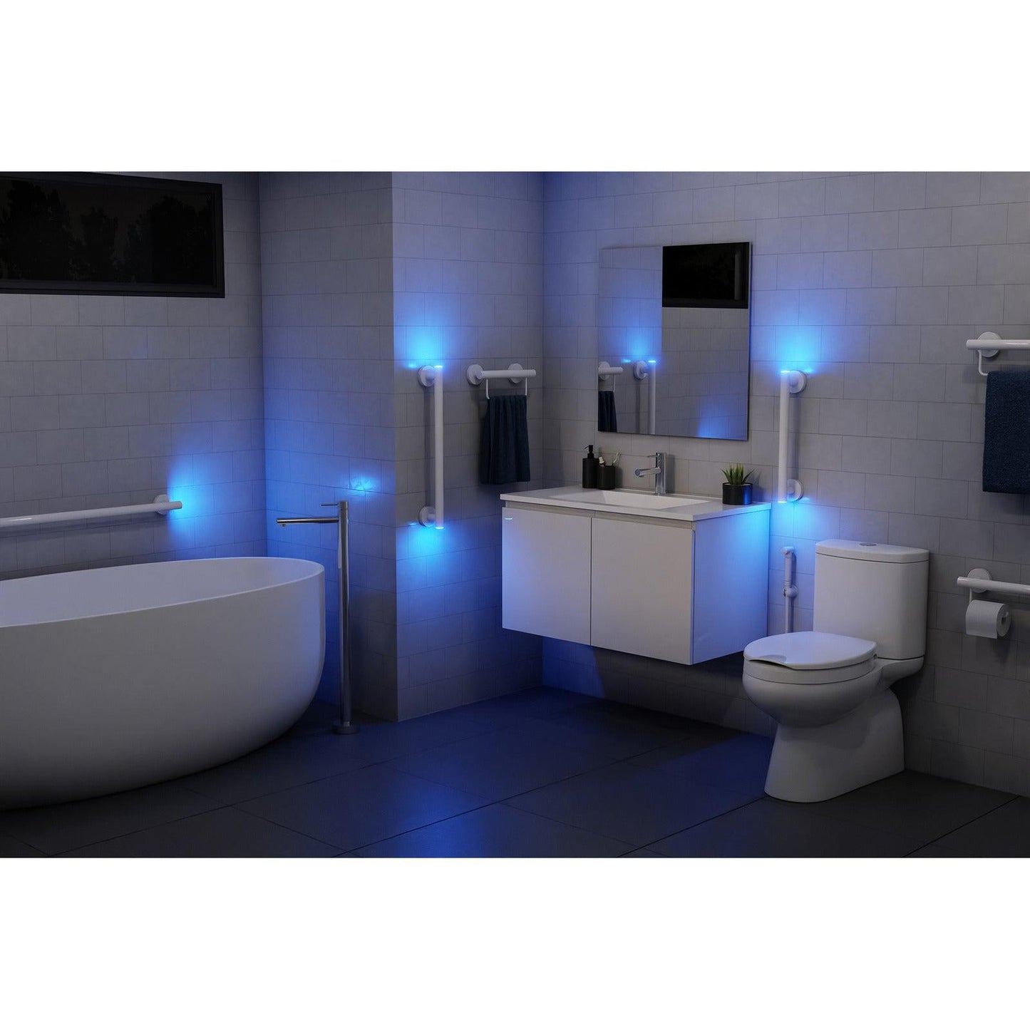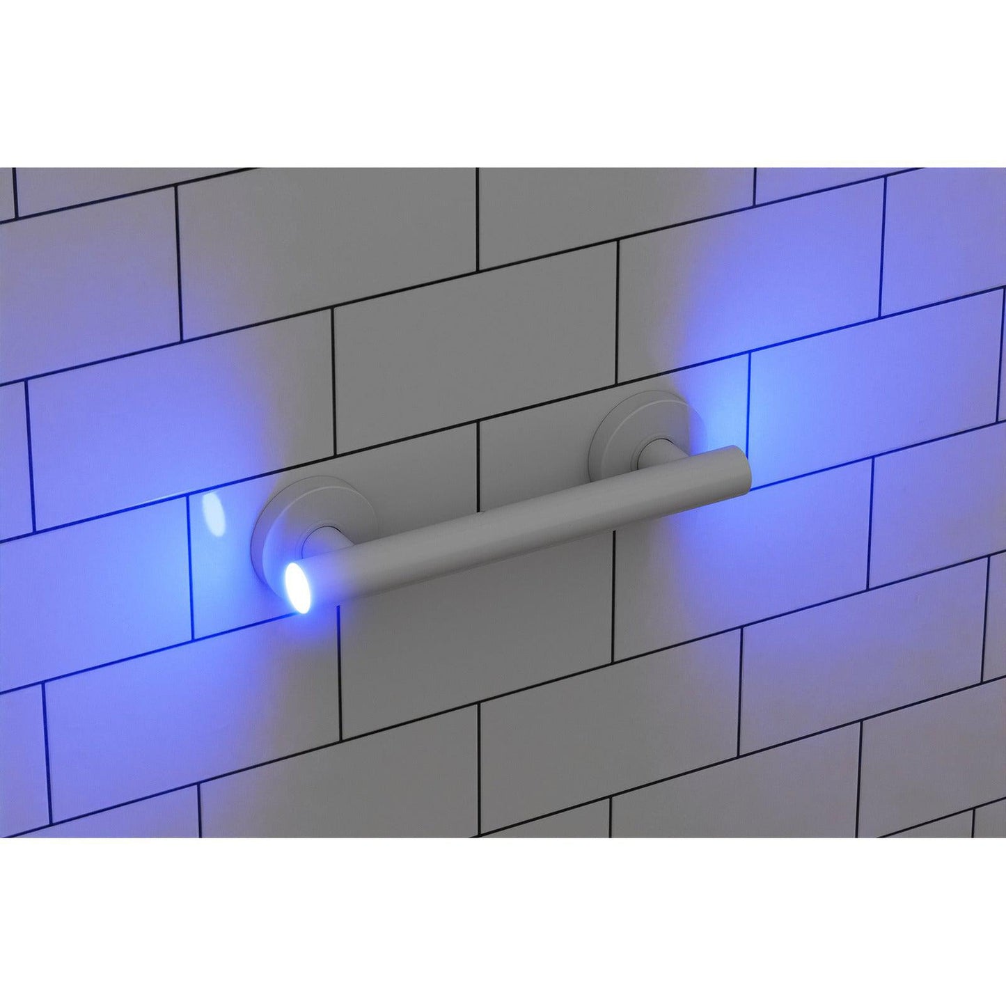 - 12" x 1.25" Stainless Steel Concealed Mount Grab Bar With Integrated LED Night Light in White