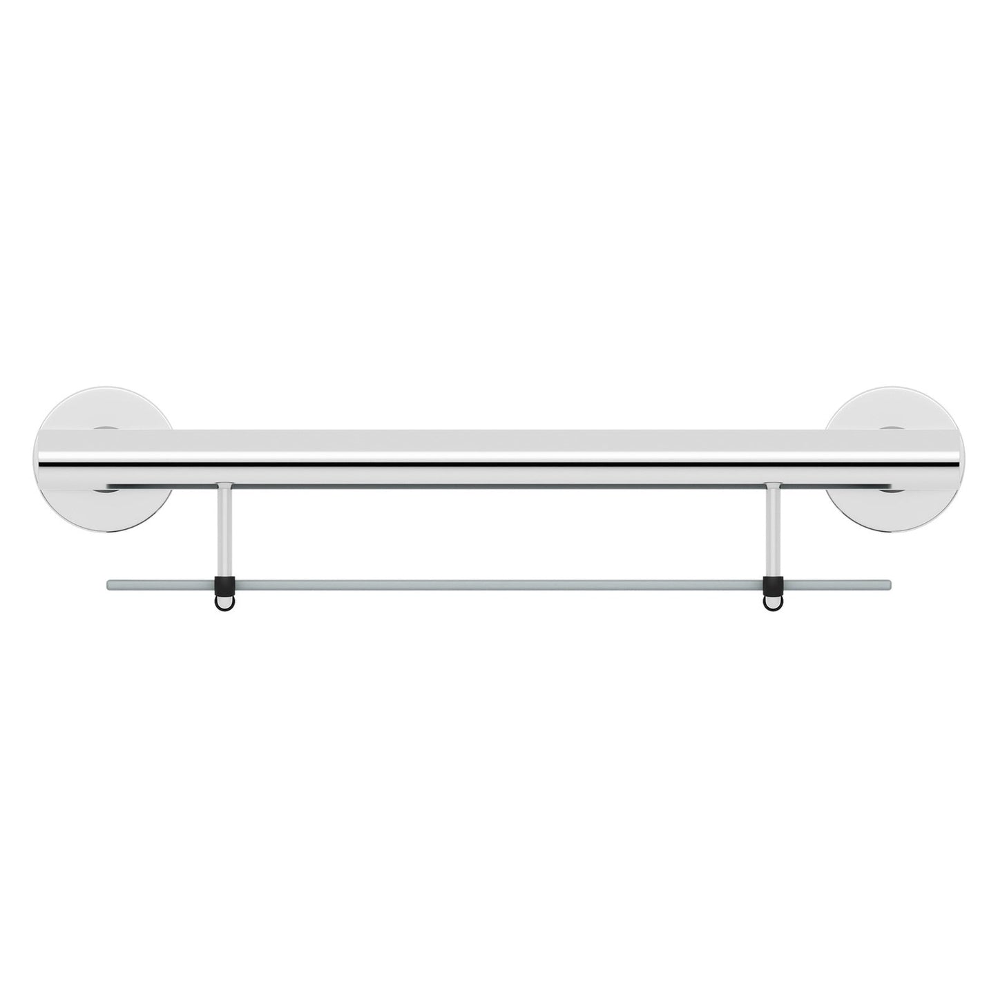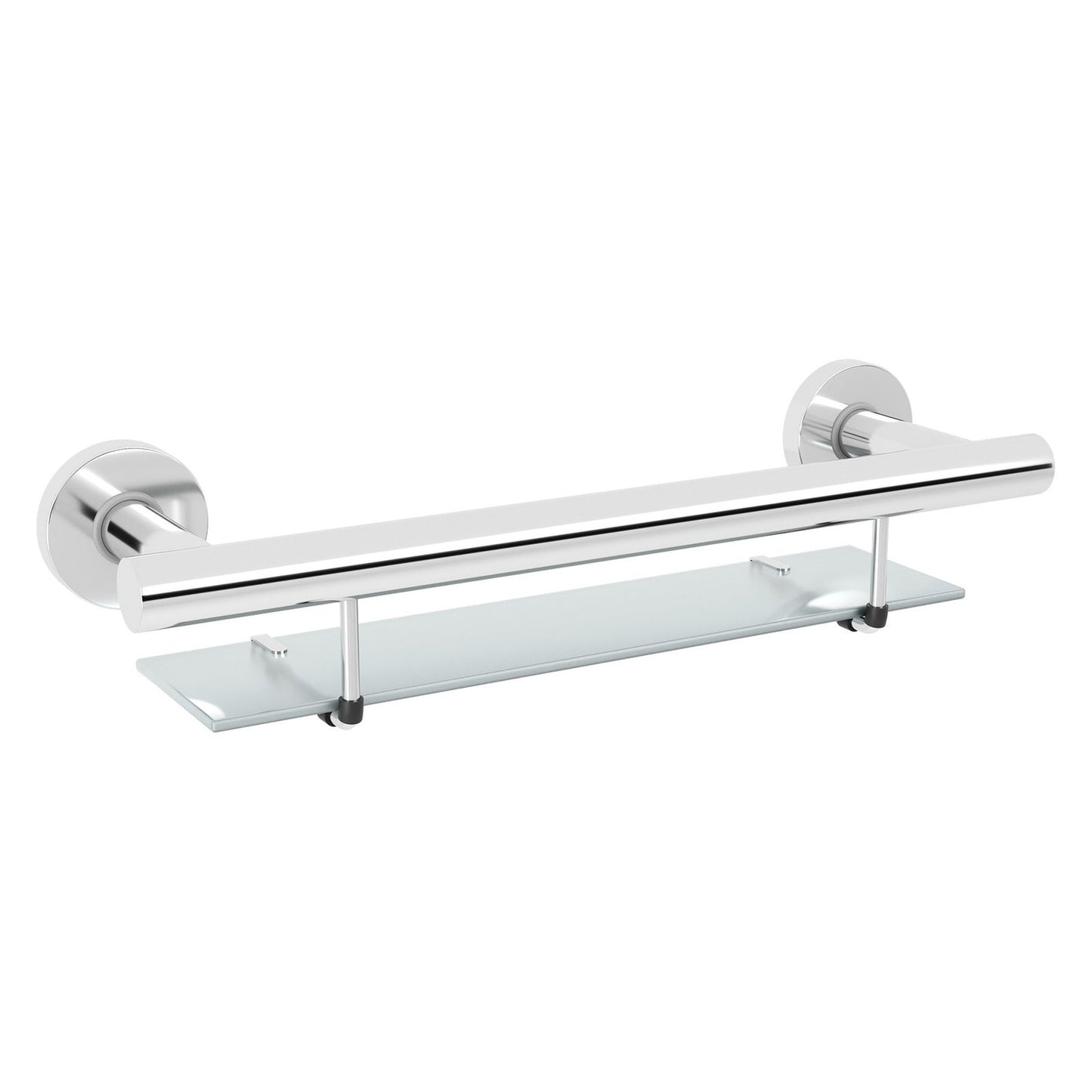 Evekare 19" Polished Stainless Steel Concealed Mount Shower/Bath Grab Bar With Integrated Glass Shelf