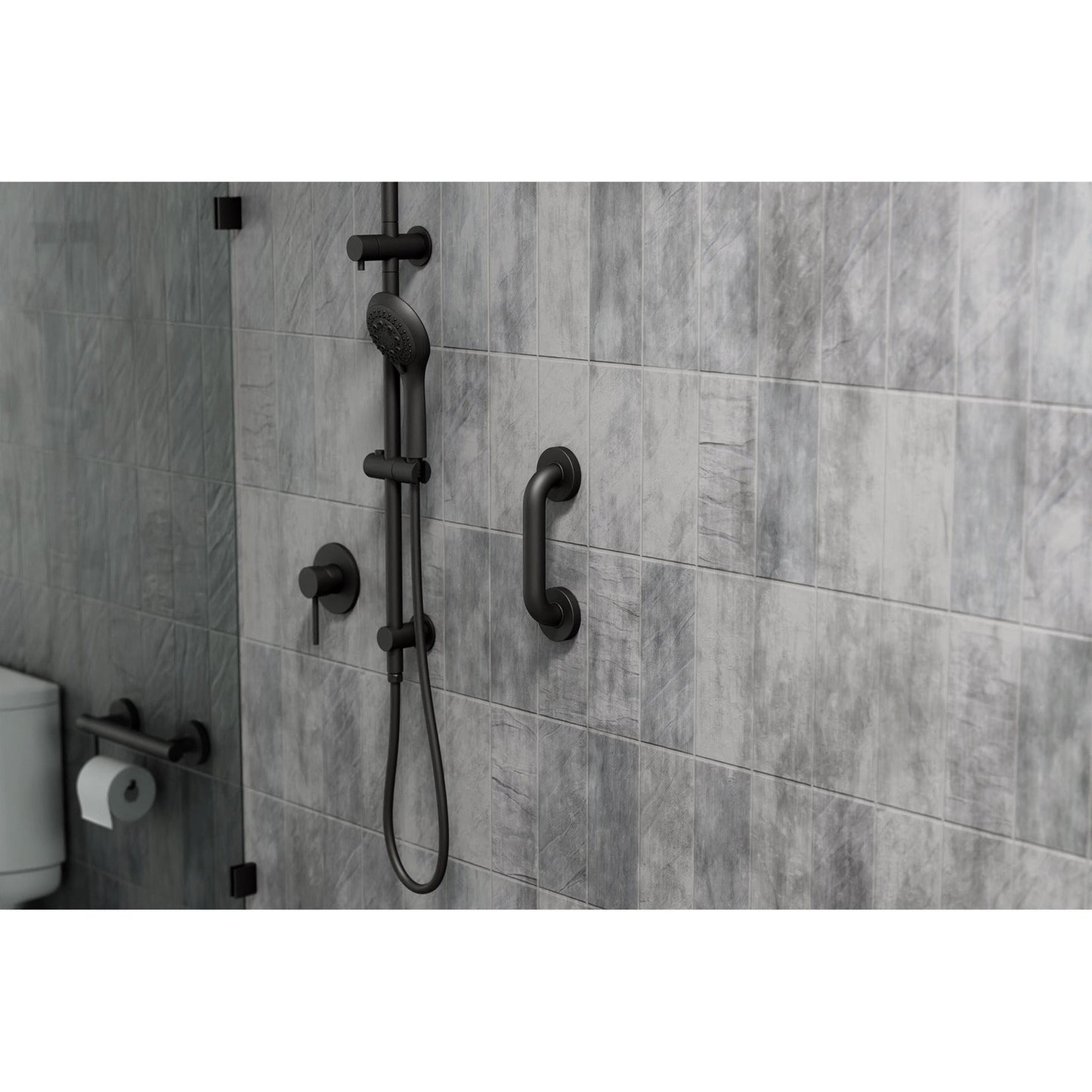 - Concealed mount grab bar with comfort grip coating