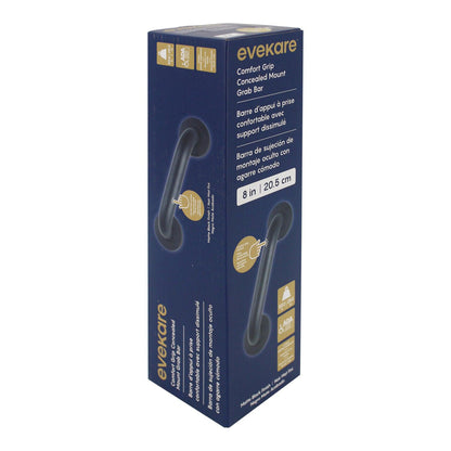 Evekare 8" x 1.25" Stainless Steel Concealed Mount Grab Bar With Comfort Grip Coating in Matte Black