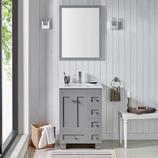 Eviva Acclaim 24" x 34" Gray Freestanding Bathroom Vanity With White Man-Made Stone Countertop and Single Undermount Sink