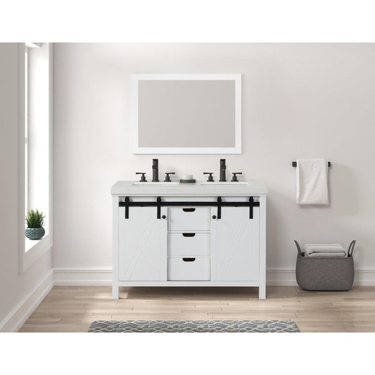 Eviva Dallas 48” x 34” White Freestanding Bathroom Vanity With White Granite Countertop and Double Undermount Sink