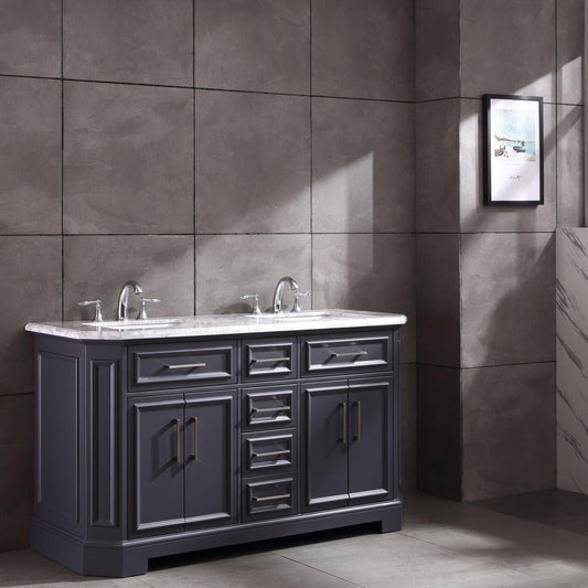 Eviva Glory 60" x 33" Dark Gray Bathroom Vanity With Carrara Marble Countertop and Double Porcelain Sink