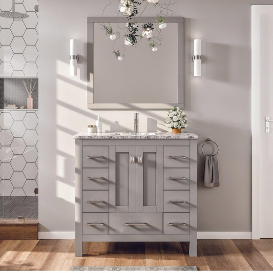 Eviva Hampton 36" x 34" in 18" Depth Gray Freestanding Bathroom Vanity With Marble Carrara Countertop and Single Undermount Sink