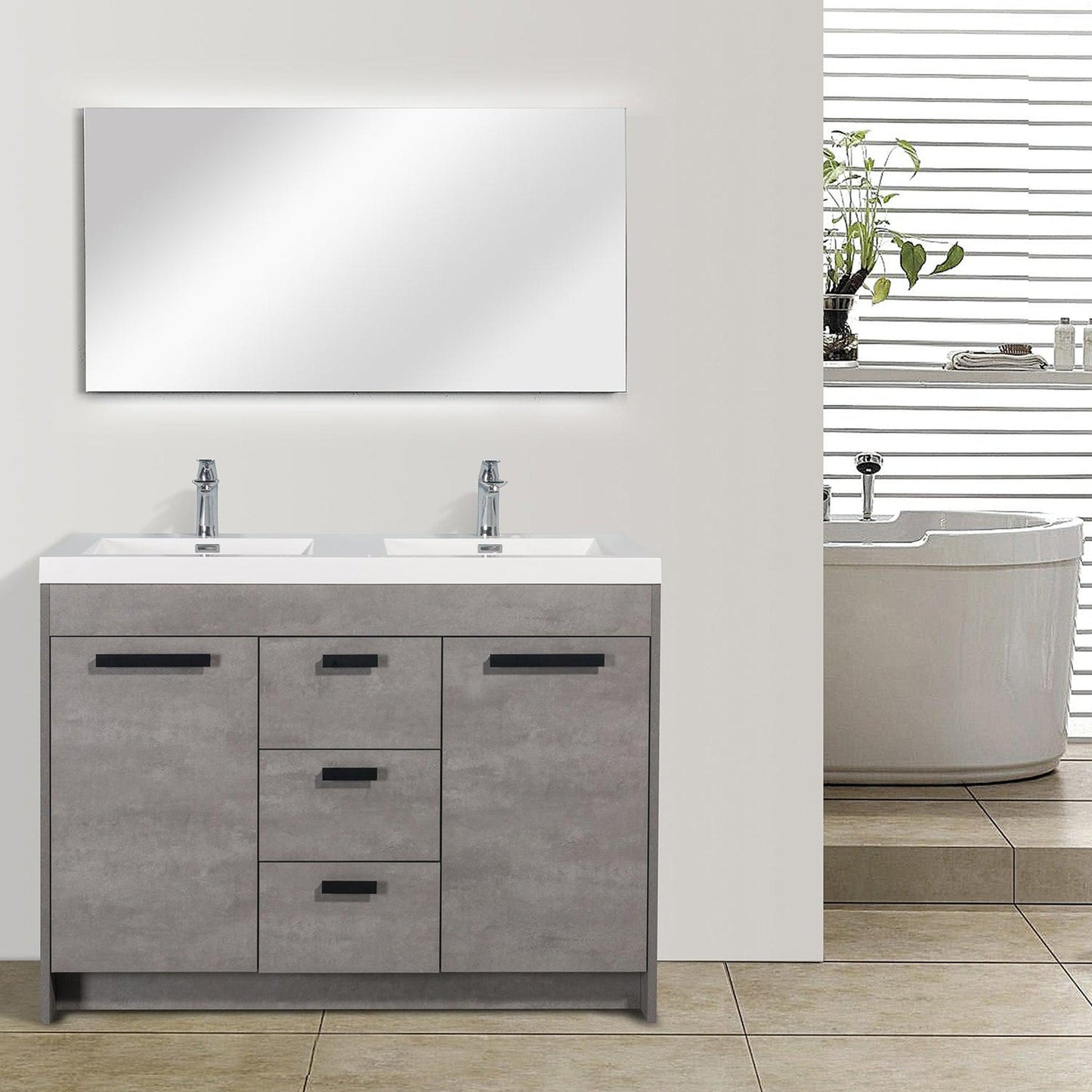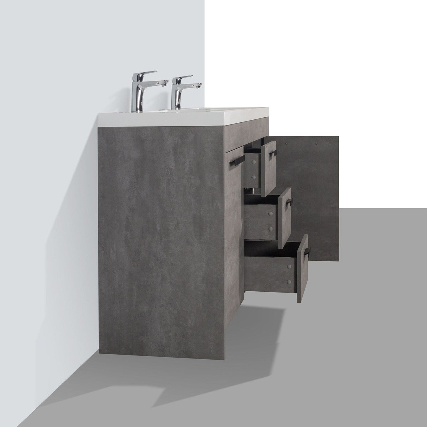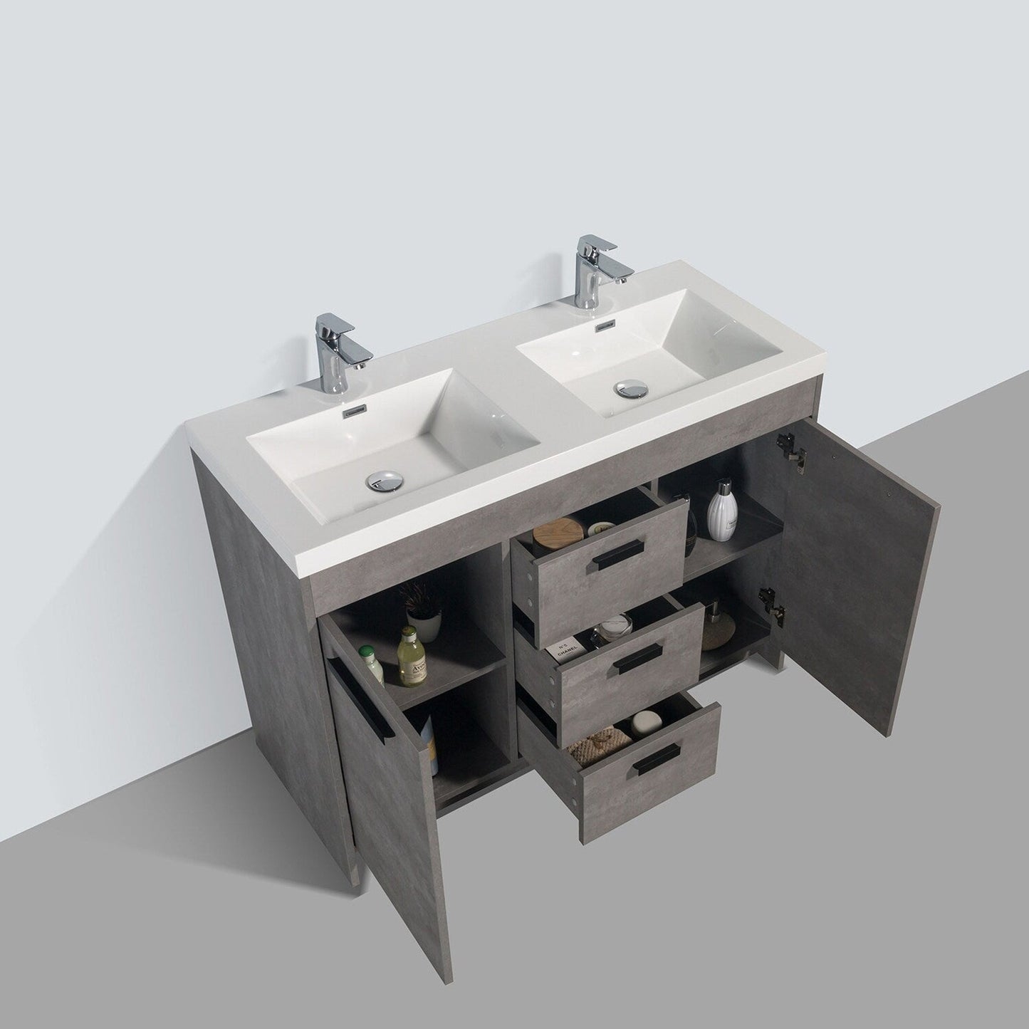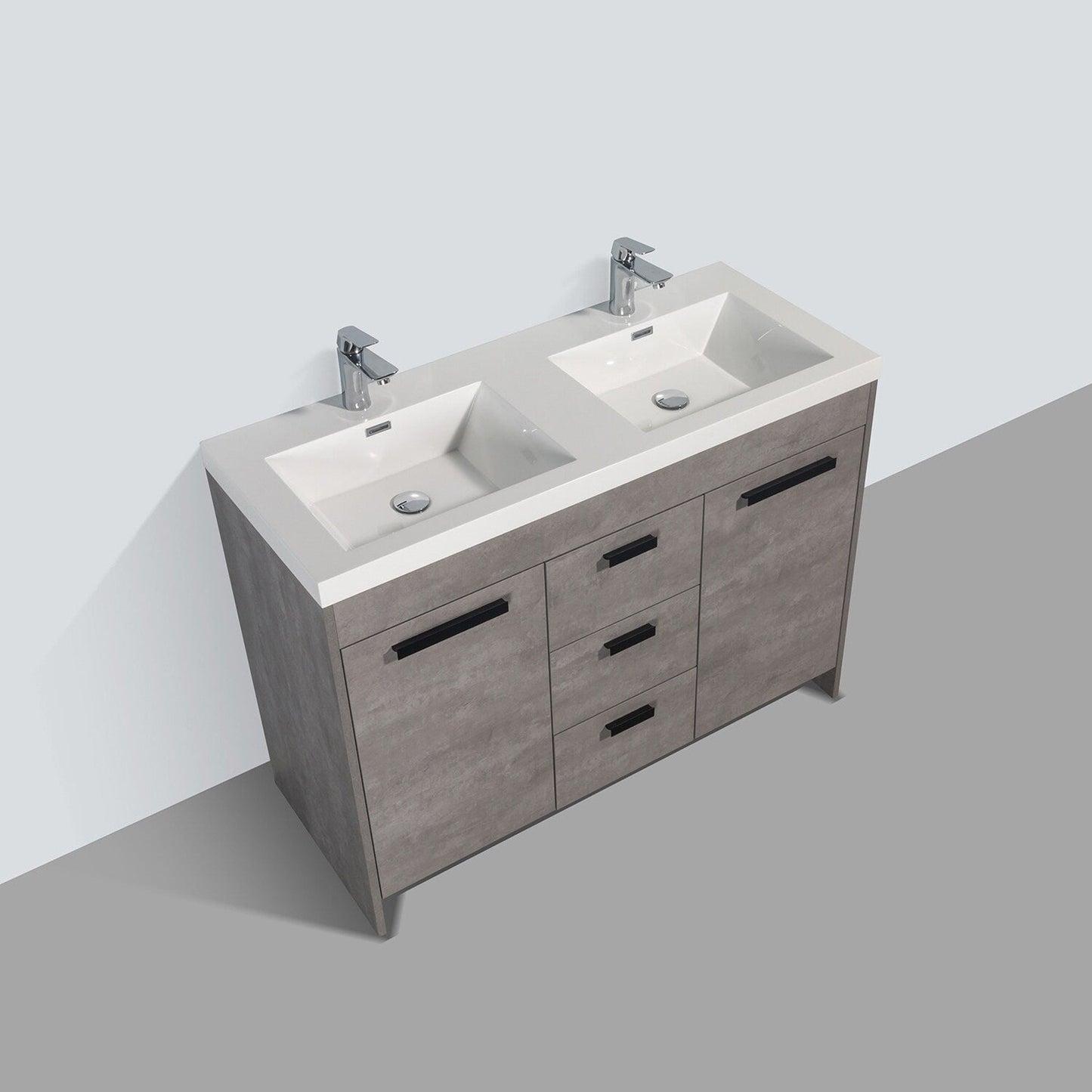 Eviva Lugano 48" x 36" Cement Gray Bathroom Vanity With White Acrylic Top & Double Integrated Sink