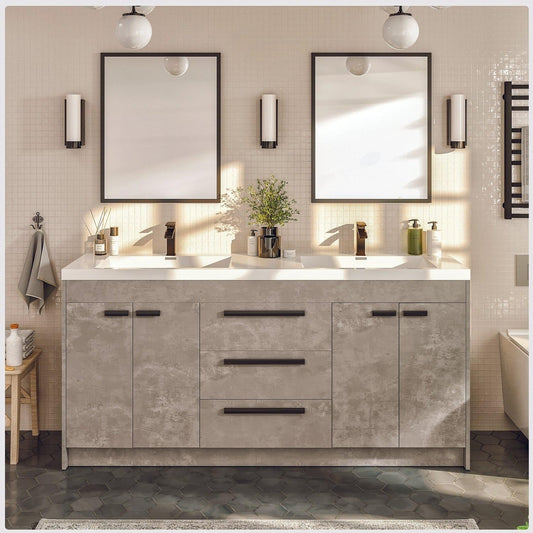 Eviva Lugano 60" x 36" Cement Gray Bathroom Vanity With White Acrylic Top & Double Integrated Sink