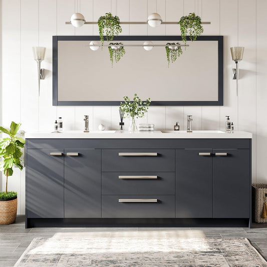 Eviva Lugano 84" x 36" Gray Bathroom Vanity With White Acrylic Top & Double Integrated Sink