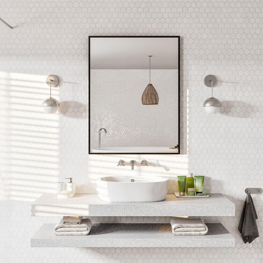 Eviva Modern 24" x 30" Black Framed Wall-Mounted Bathroom Mirror