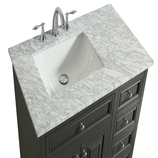 Eviva Monroe 36" x 35" Gray Bathroom Vanity With White Carrara Marble Countertop and Single Undermount Sink