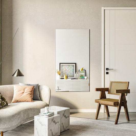 A complement to any style of home decor the Sleek mirror features beautiful edges and a classic frameless design. Made of high quality silvered mirror this simple and functional mirror provides maximum clarity. The protective coating prevents tarnishing and the 0.6 in. thickness makes this mirror durable and long lasting. Easy to hang with our illustrated installation instructions. Hanging hardware is included for vertical or horizontal mounting. This versatile mirror is perfect for your bathroom bedroom or living room.