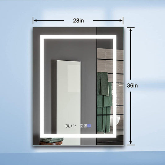 ExBrite Third Generation 28" x 36" Frameless LED Super Slim Bathroom Vanity Mirror With Clock, Night Light, Anti Fog, Dimmer, Touch Button and Waterproof IP44