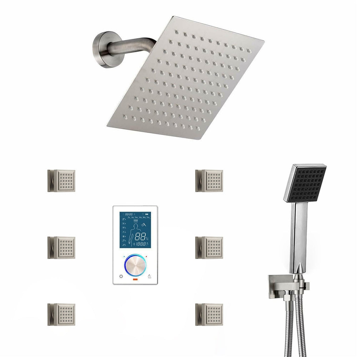 Fontana 16" Brushed Nickel Wall-Mounted Digital Temperature Controller Shower System With Hand Shower and 6-Jet Body Sprays