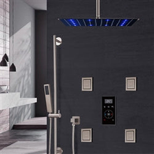 Fontana 8" Brushed Nickel Ceiling Mounted Rainfall Digital Control Shower System With 4-Jet Body Sprays, Hand Shower and Water Powered LED Lights