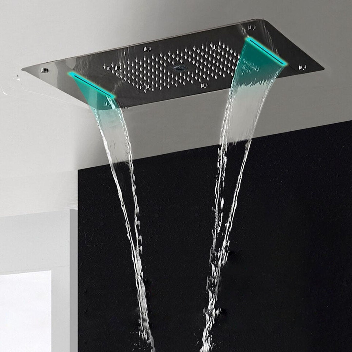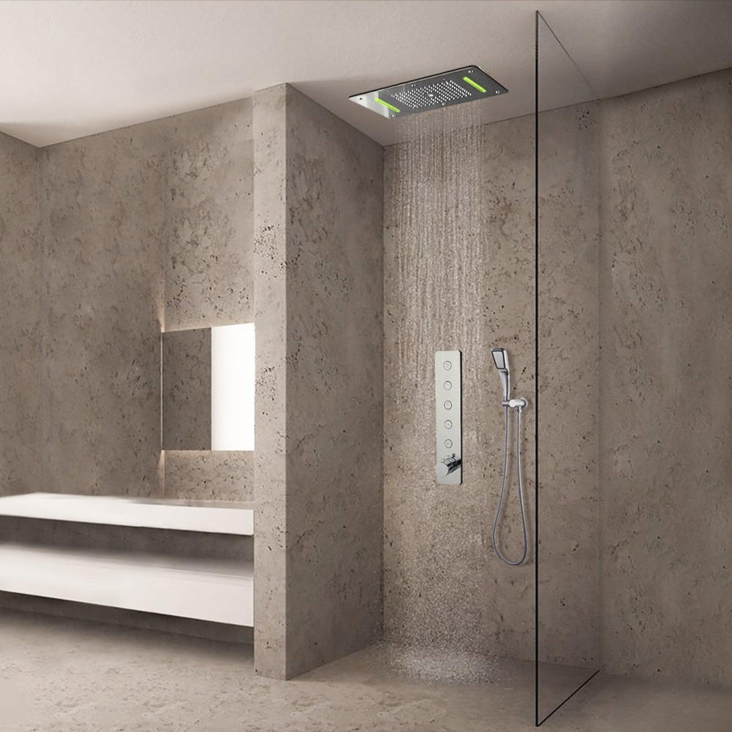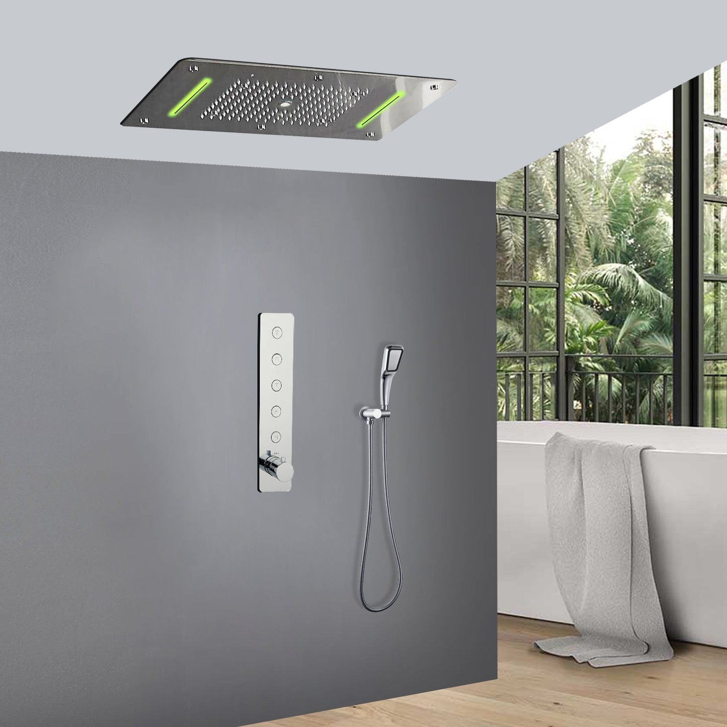 Andria Chrome Thermostatic Recessed Ceiling Mount LED Rainfall Waterfall Mist Shower System with Handheld Shower and Vertical Valve
