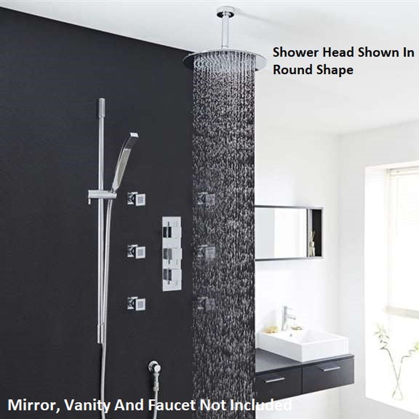 This Large Square rainfall shower head has the beauty & sophistication that a chrome finish provides. Six adjustable shower jets to improve your massage experience. Handheld shower arm and 3-control mixers provide all-over coverage at exactly the pressure and temperature that's right for you. Optional LED lighting is available.