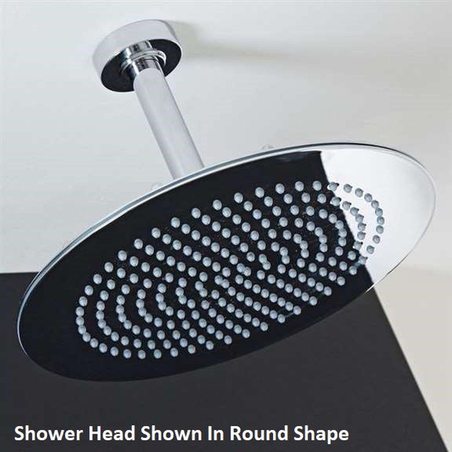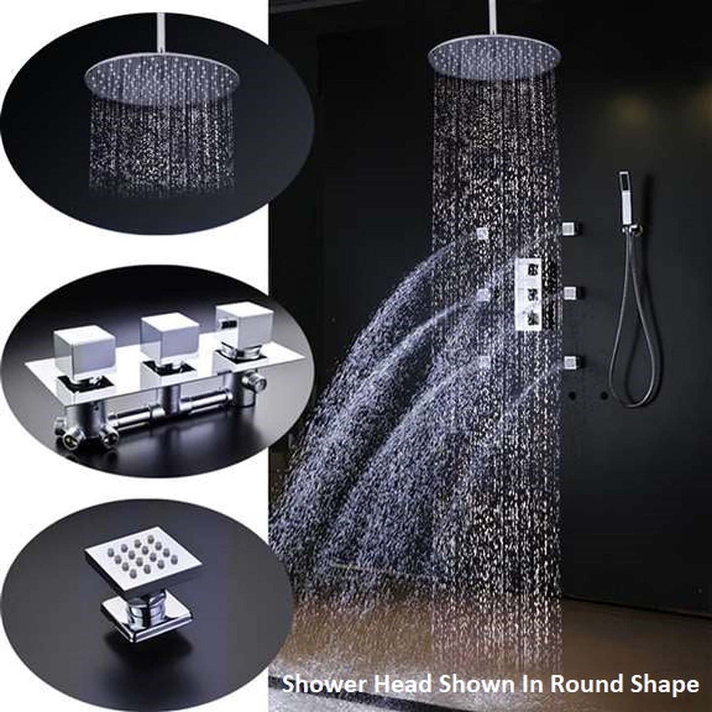 FontanaShowers Atlantic Creative Luxury 12" Large Chrome Square Ceiling Mounted Massage Shower System Without Water Powered LED Lights, 6-Jet Body Sprays and Hand Shower
