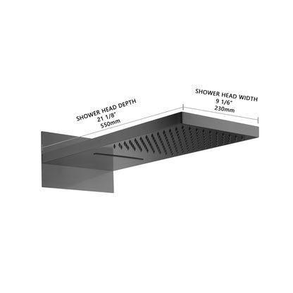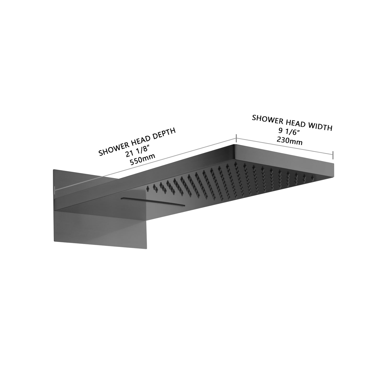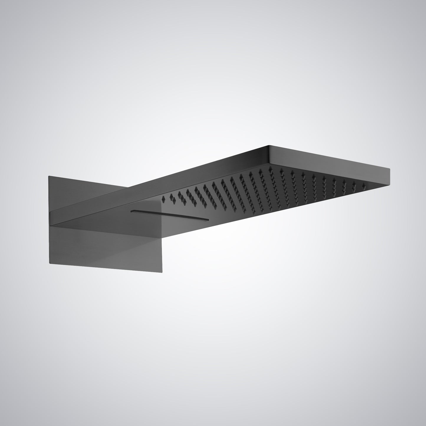 The Fontana Compiegne Gun Metal Gray Multifunctional Wall-Mounted Shower Head perfectly combines the best in style and performance. Its richly deluxe, sleek gun metal gray finish enhances style and durability for lasting performance. The clean, minimalist lines and robust construction make it ideal for those individuals who want both aesthetic appeal and reliability in one accessory. Its modern dimensions-21 1/8" length and 9 1/16" width- guarantee great water exposure for a full-body showering experience. The high-quality brass and stainless steel used ensure resistance to wear and corrosion for reliable performance that will last daily use.