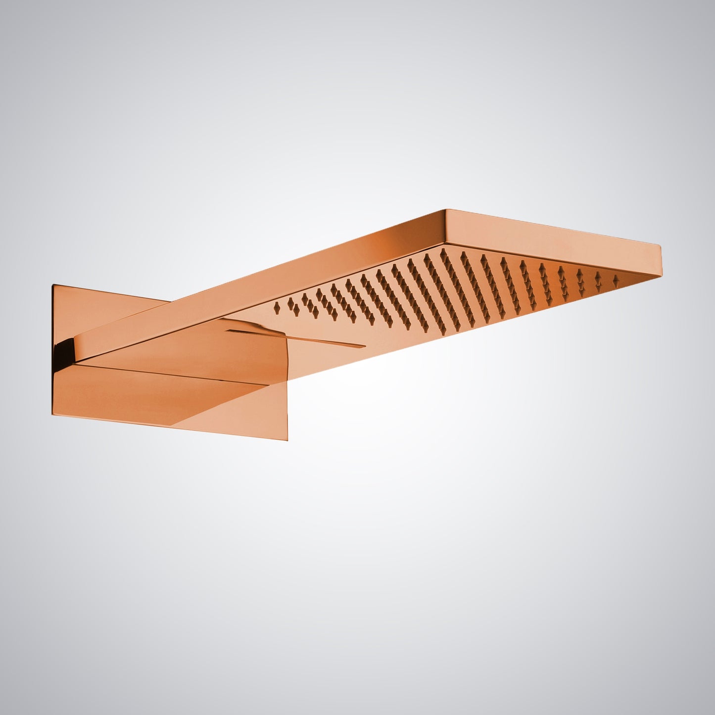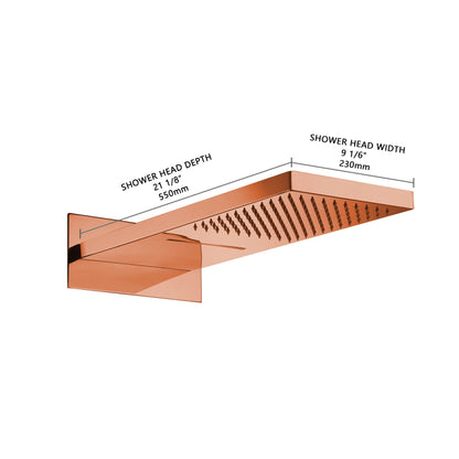The Fontana Compiegne Rose Gold Multifunctional Wall-Mounted Shower Head perfectly combines the best in style and performance. Its richly deluxe, sleek rose gold finish enhances style and durability for lasting performance. The clean, minimalist lines and robust construction make it ideal for those individuals who want both aesthetic appeal and reliability in one accessory. Its modern dimensions-21 1/8" length and 9 1/16" width- guarantee great water exposure for a full-body showering experience.