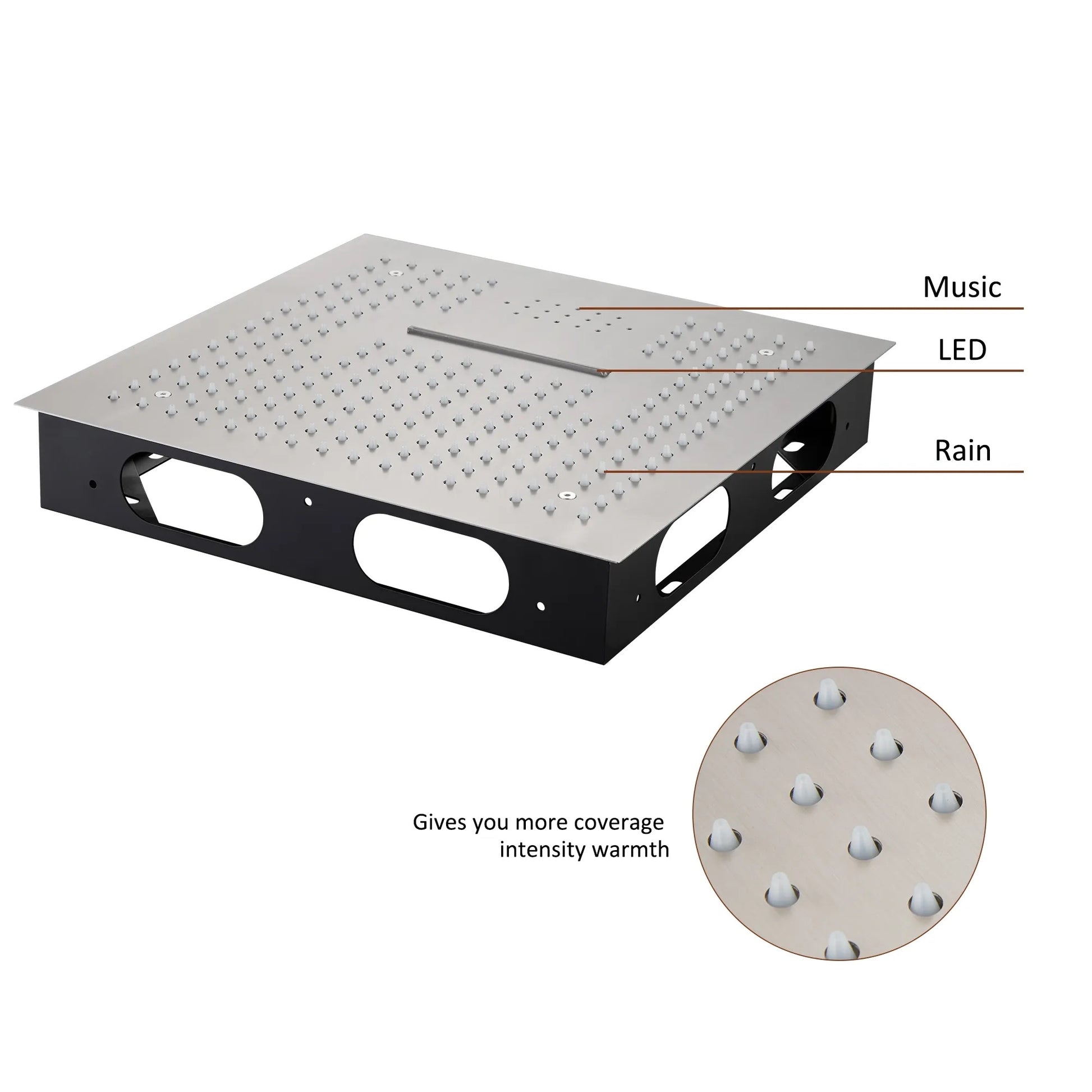- Please note for LED shower the LED light is not covered under the factory warranty. Under normal conditions LED lights should last the lifetime of your shower. However, mineral and residue build up in your water may cause the LED lights to stop working and thus proper maintenance should be conducted to clean your shower head.