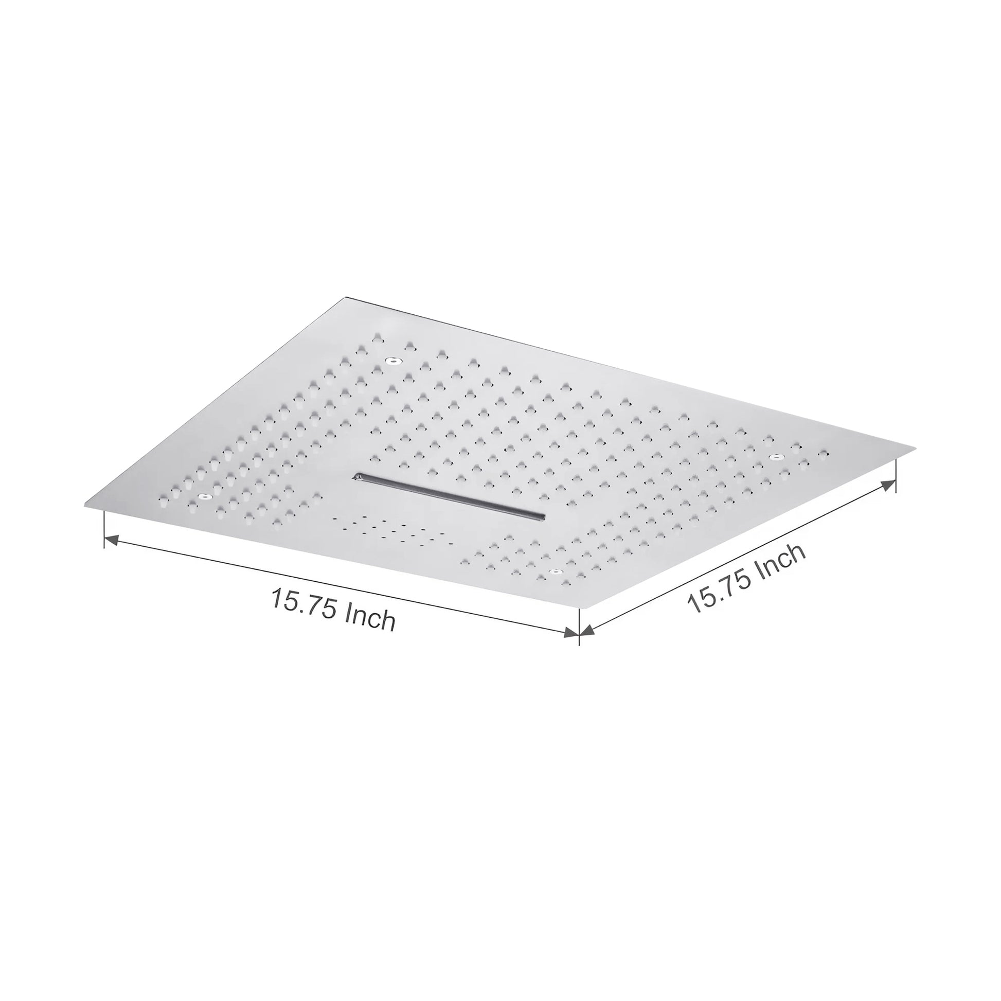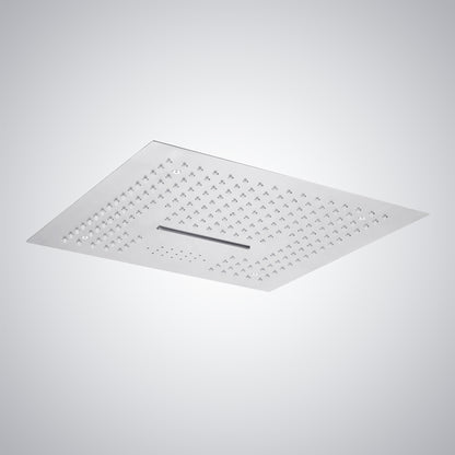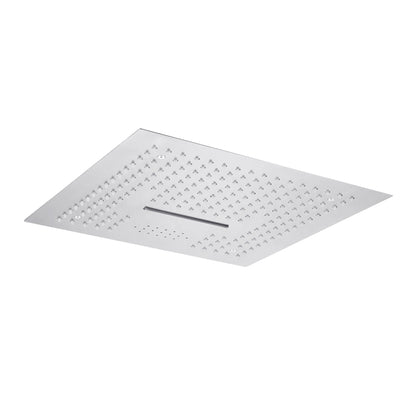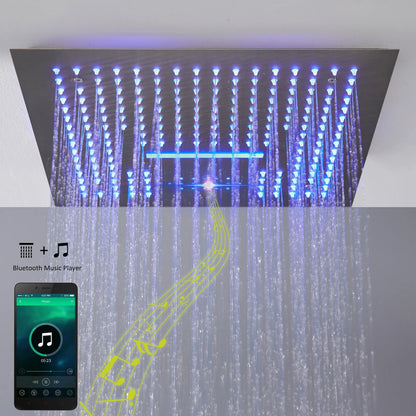 Introducing the Fontana Cuenca Chrome Multifunctional LED Music Shower Head which will change the way you shower. It's a perfect blend of innovative technology and elegant design making every bath time an exclusive getaway. Constructed from high-quality stainless steel with a lustrous chrome finish this ceiling-mounted fixture speaks volumes to all modern bathroom settings. Designed to be multifunctional it caters to different mood options. Relax with the soothing rainfall effect cool off with a refreshing waterfall stream or enjoy added convenience with a handheld shower. Press a button and completely immerse yourself in your home spa experience by turning on the body jets. Yet another special feature this shower head boasts is the strong LED lighting system within its design, along with built-in music.